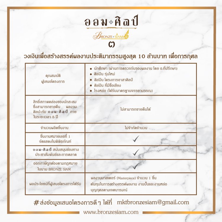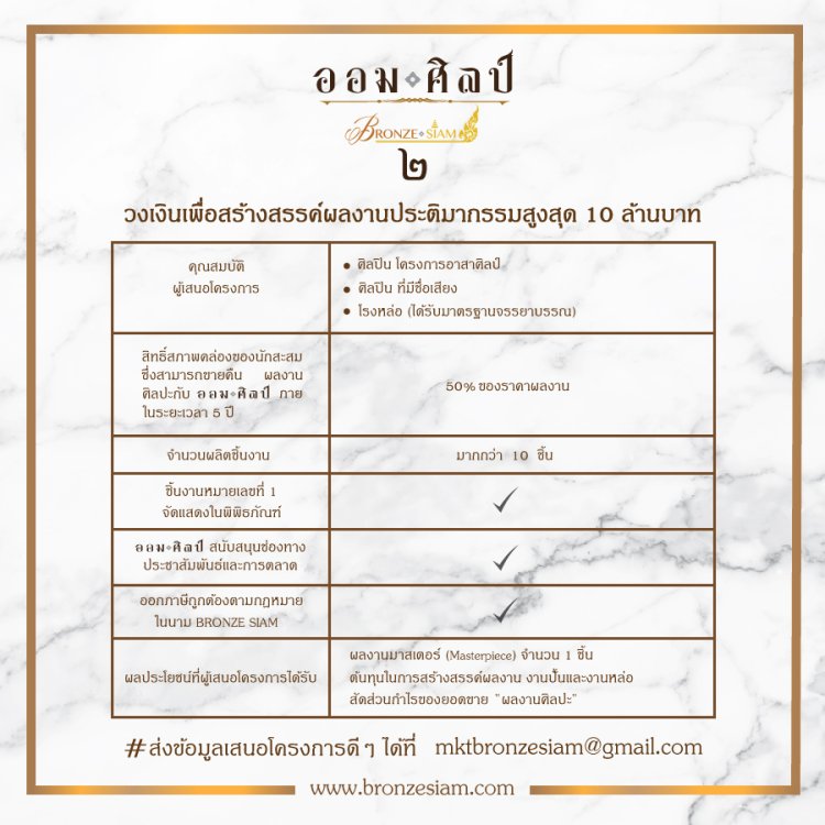 “AOMSILP” origins from our inspiration to support Artists worldwide and world society. Artists from worldwide can submit their projects to help improving their society. Aomsilp will help being their partner for all processes of casting bronze sculpture. To develop a collection of bronze arts may require a lot of funds and processes. Aomsilp is an alternative partner to support Artist’s passion . For more information please contact : mkt@cpscollection.com